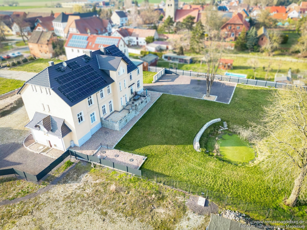 Bitte beachten Sie, dass auf dem Gutshaus sowie auf dem Nebengelass eine Photovoltaikanlage installiert ist, die jedoch nicht zum Eigentum gehört.