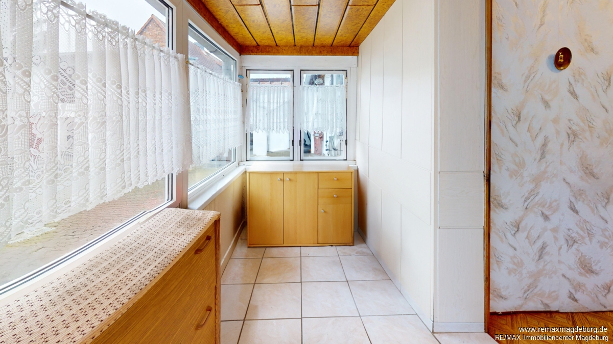 Das vordere Wohnhaus aus dem Jahr 1936 überzeugt mit einer durchdachten Raumaufteilung. Über den zentralen Flur erreichen Sie das Wohnzimmer, das in ein angrenzendes Kinderzimmer übergeht. Die Küche mit direktem Zugang zum Badezimmer bildet den funktionalen Mittelpunkt des Hauses. Ein separates Schlafzimmer sowie weitere Stauflächen im Dachboden und Keller bieten zusätzliche Möglichkeiten zur Nutzung.