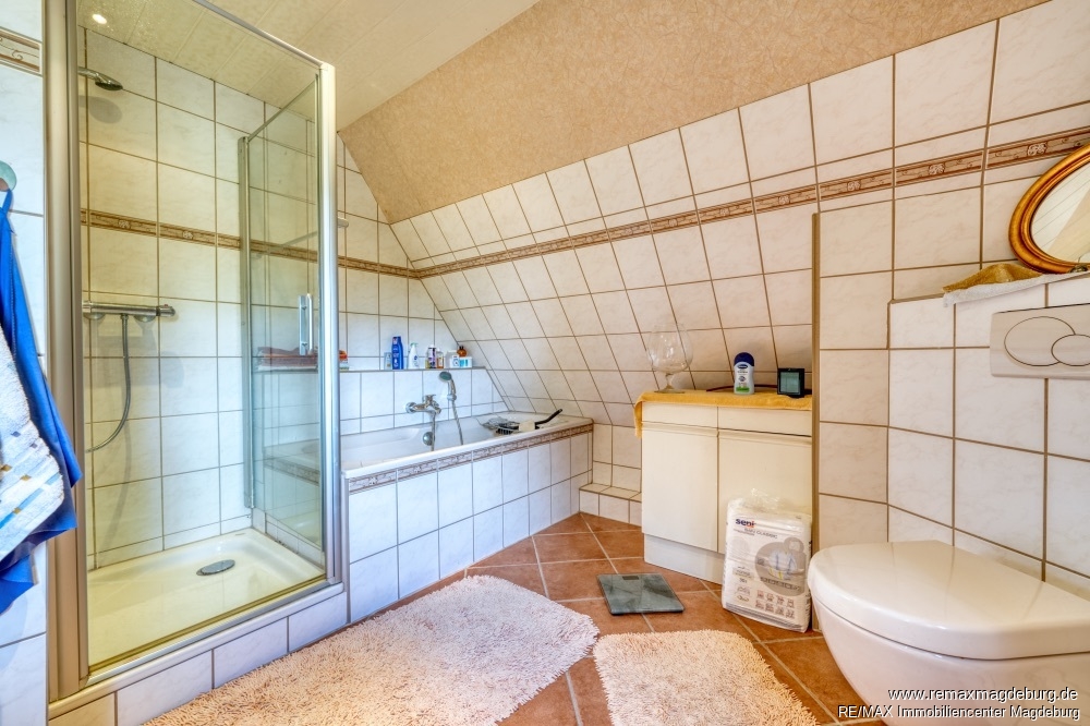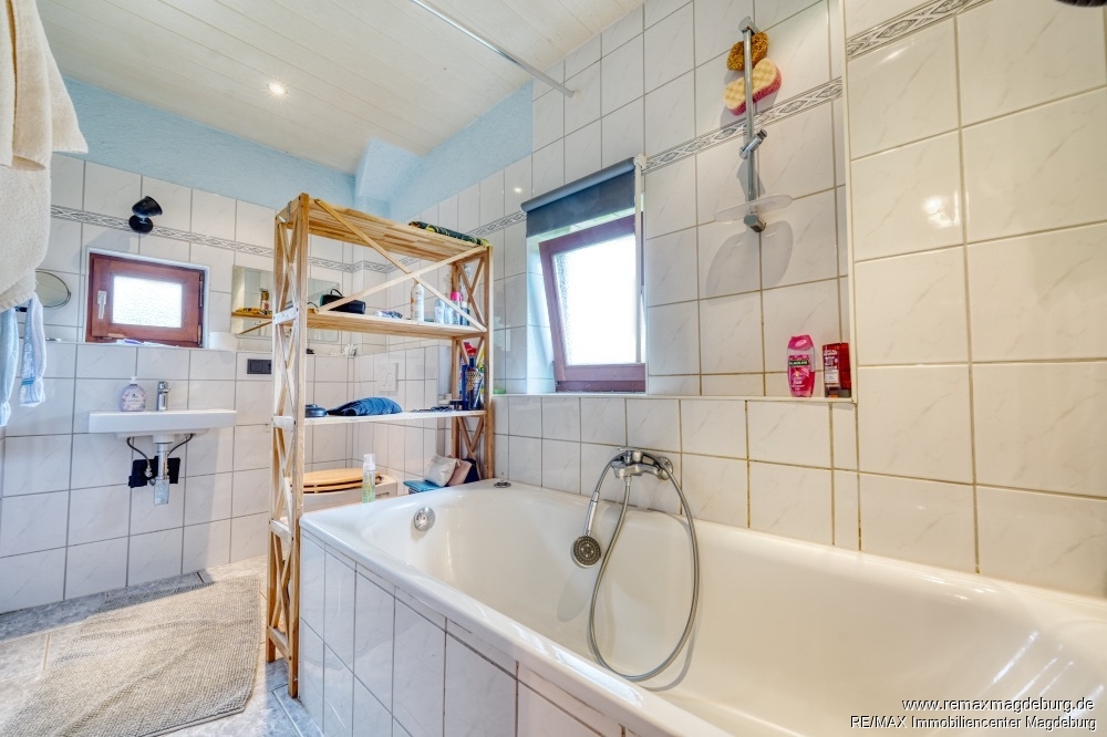 - Badezimmer mit Wanne, Dusche u. Fenster