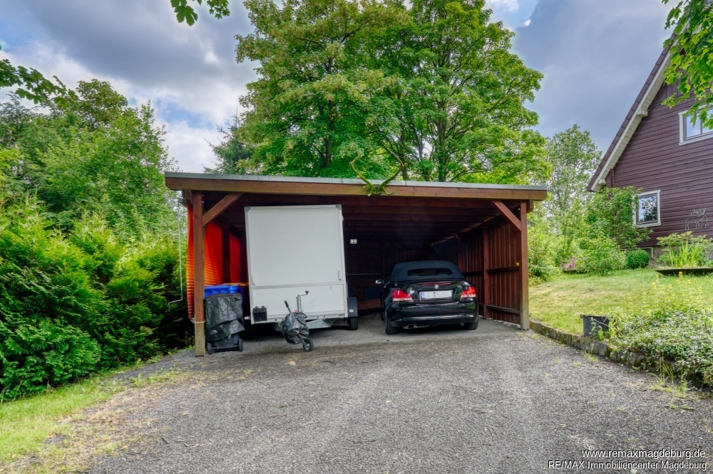 Das Haus ist teilunterkellert. Hier sind drei weitere Räume vorhanden. Auf dem Grundstück steht auch ein Carport mit Platz für 2 Pkw zur Verfügung.
