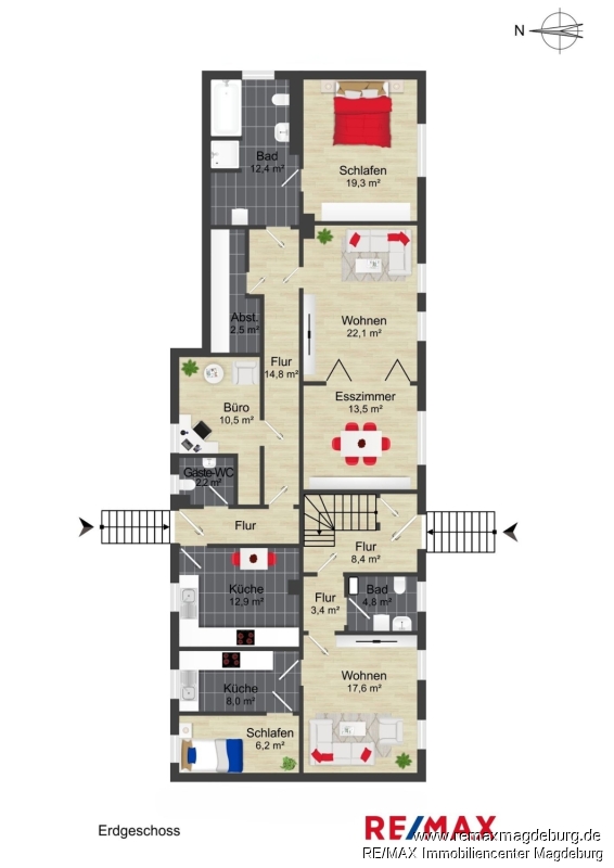 Das Mehrfamilienhaus ist wie folgt aufgeteilt:Erdgeschoss: