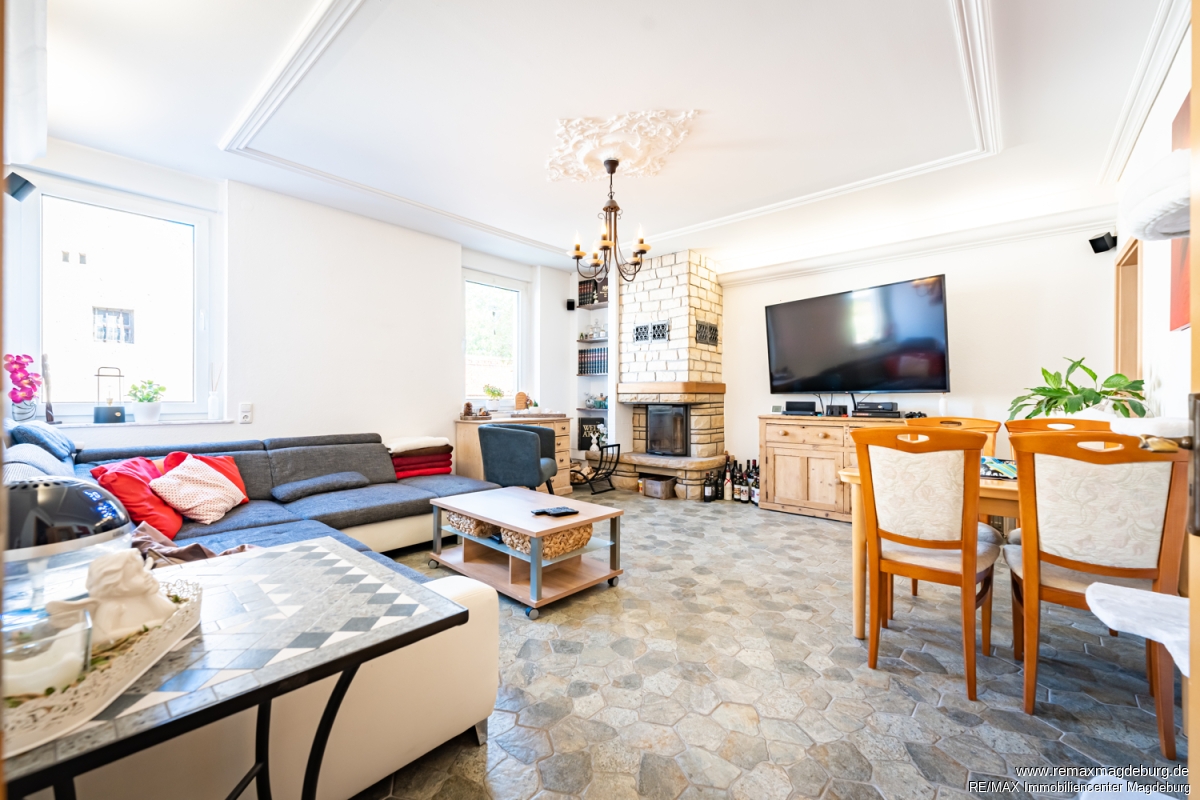 Dieses Einfamilienhaus mit separater Einliegerwohnung aus dem Jahr 1903 vereint Geschichte und Behaglichkeit mit viel Platz für individuelle Wohnträume. Auf rund 193 m² Wohnfläche und insgesamt ca. 351 m² Nutzfläche eröffnet es zahlreiche Möglichkeiten für Familien, Paare oder Menschen, die Wert auf Großzügigkeit und Freiraum legen.Die durchdachte Raumaufteilung sorgt für eine angenehme Wohnatmosphäre. Im Erdgeschoss, welche über eine Fußbodenheizung verfügt, erwarten Sie ein helles Wohnzimmer mit Kamin, eine geräumige Küche sowie ein großzügiges Badezimmer mit einer Badewanne, das Komfort im Alltag garantiert. Hinzu kommen praktische Nebenräume, die zusätzlichen Stauraum bieten. Ein besonderes Highlight ist der großzügige Partyraum mit eigener Bar und direktem Zugang zur Terrasse – ideal für gesellige Abende und unvergessliche Momente mit Familie und Freunden.