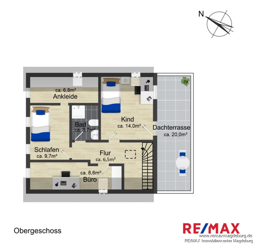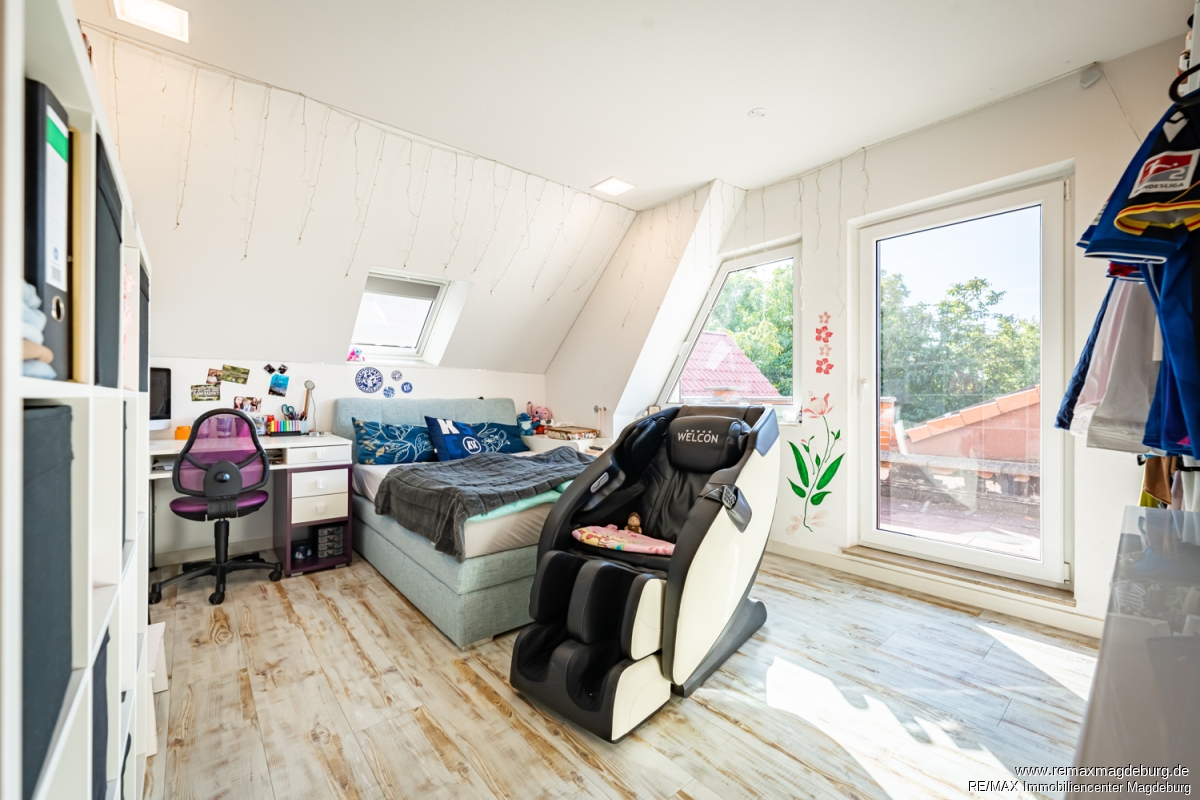 - Kinderzimmer mit Zugang zur Dachterrasse.