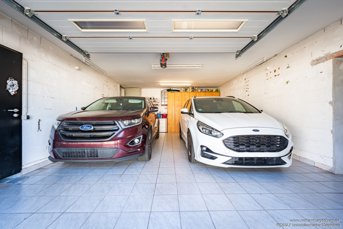 Die Einfahrt wird gemeinschaftlich mit dem Nachbarn genutzt. Darüber hinaus stehen ein Doppelcarport sowie eine im Haus integrierte Doppelgarage mit elektrischem Rolltor für komfortable und großzügige Parkmöglichkeiten zur Verfügung.
